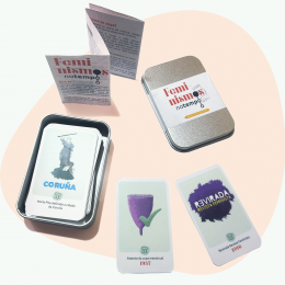 Feminismos no tempo: acontecementos é un xogo de 55 cartas para situar feitos relevantes da historia do feminismo co obxectivo de crear unha liña do tempo. Atoparás catro tipos de cartas: publicacións de obras literarias, obituarios, nacementos e feitos históricos. Ubícate no feminismo e non perdas o tempo!